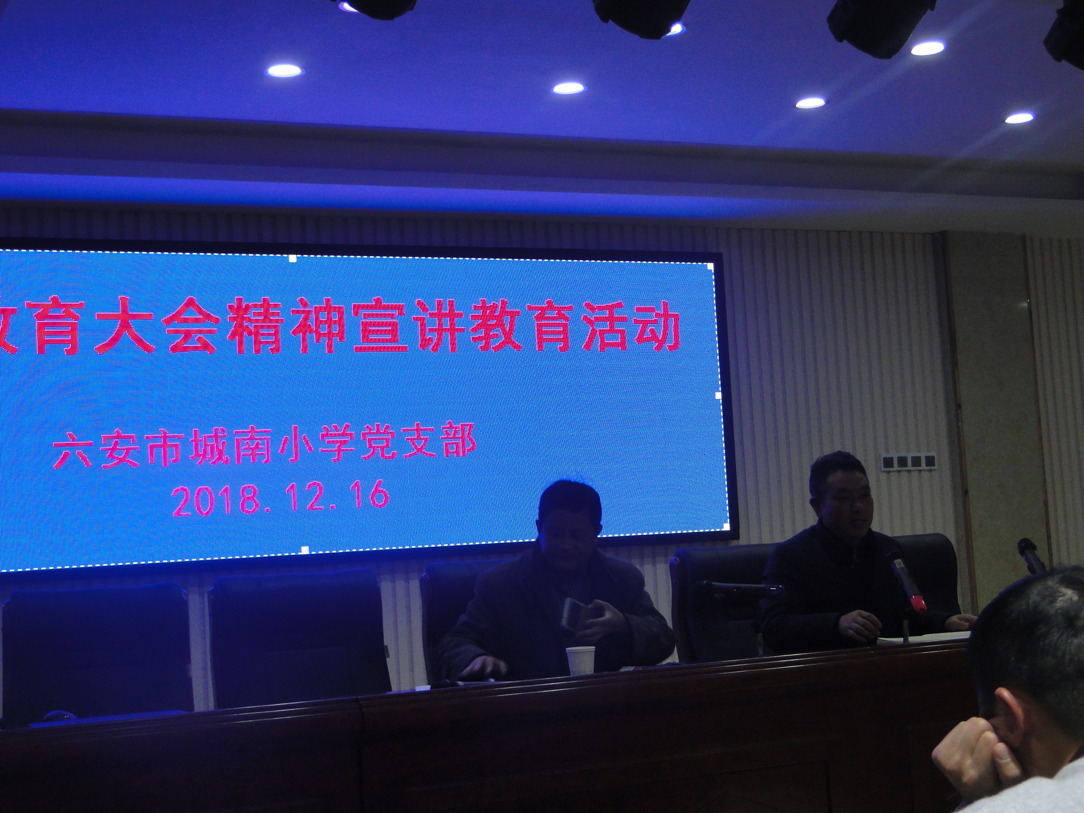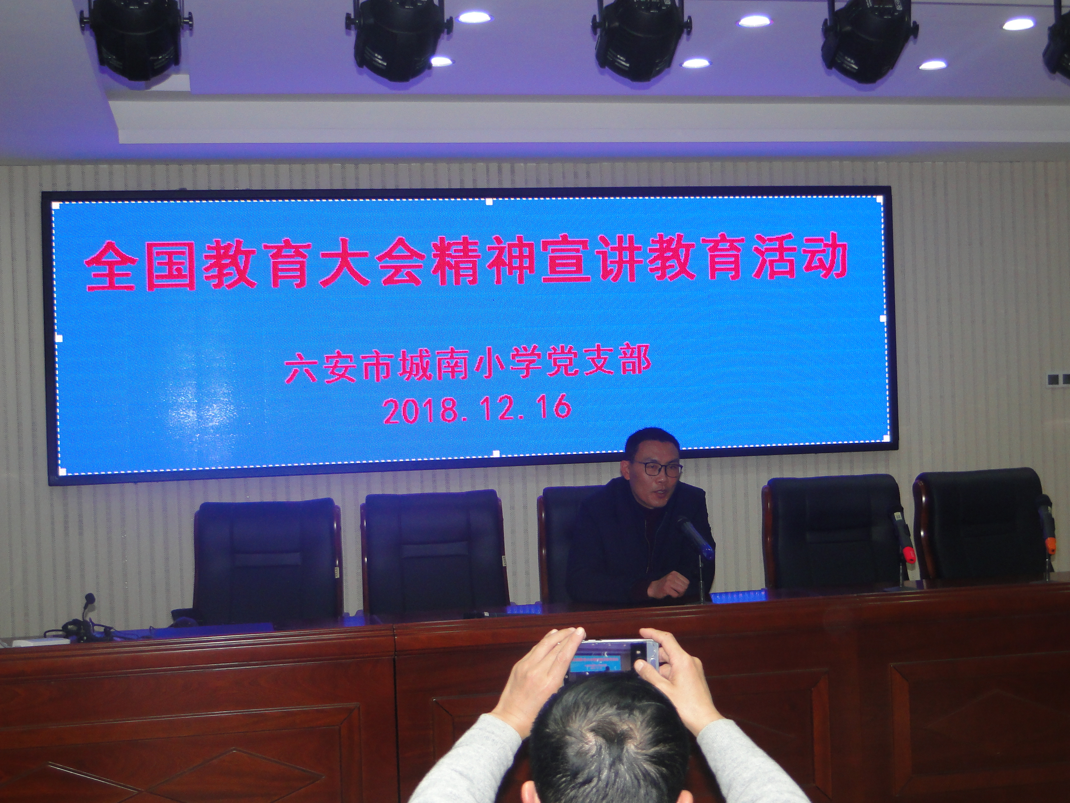 为认真学习和贯彻落实习近平总书记在全国教育大会上的重要讲话精神,12月16日下午,我校在多功能教室举行了全国教育大会精神宣讲教育活动,裕安城区教育辅导区党总支书记李彬,副书记张正好出席并作宣讲,校党支部书记傅永章主持会议。