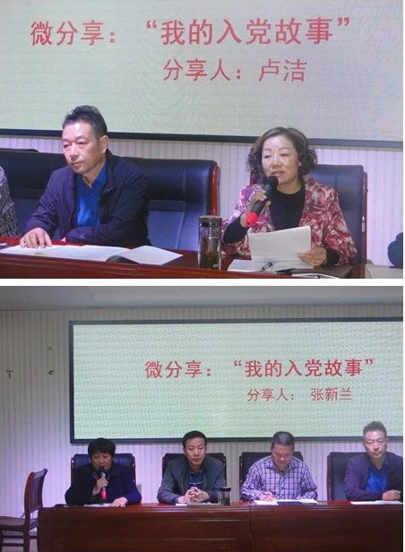 接着,老党员分享“我的入党故事”。卢洁校长、张新兰老师讲述了自己的入党故事,她们对共产主义的坚定信仰、对党的真挚情感和为党的教育事业无私奉献的精神深深地打动着每一位党员教师。
