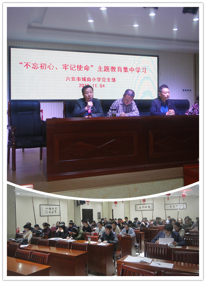 为全面贯彻习近平总书记新时代中国特色社会主义思想和党的十九大精神,11月4日,城南小学全体教师在校会议室开展“不忘初心、牢记使命”主题教育检视问题暨整改工作会。会议由城南小学党支部书记、校长傅永章主持。