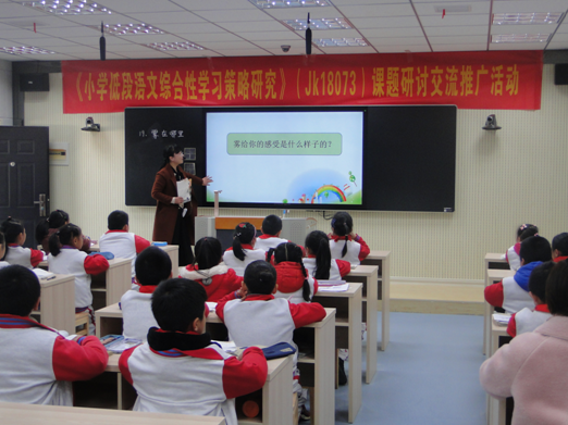 卢洁副校长指出综合性学习可以和阅读教学、口语交际、写作教学融合在一起,要强调学生的合作性,强调学***同体的重要性,除了师生评价,生生评价也是很重要的,要关注语言的实践运用,提升学生的语文素养。她同时也对课题组全体成员提出了三点希望:
