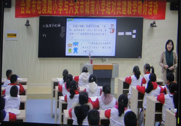 在观摩课后,首先由付秀兰主任代表区教体局致欢迎辞,随后安徽省特级教师、合肥市学科带头人周红老师做了“微讲座”,并与在场参加活动的老师进行了互动交流。座谈会上,大家对两节课进行了点评,并提出了中肯的建议。屯溪路小学的两位老师也跟大家交流分享了做课思路,参与活动的教师纷纷表示受益匪浅。