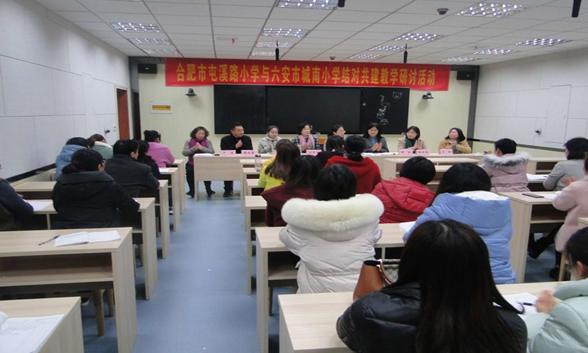 12月12日下午,六安市城南小学迎来了合肥市包河区屯溪路小学的专家老师们,如期举行了屯溪路小学与城南小学的结对共建教育教学研讨活动。裕安区教研室付秀兰主任、城南小学校长傅永章、城南小学语文和英语教师,以及城北二小佛子岭路校区的部分教师共同观摩研讨。