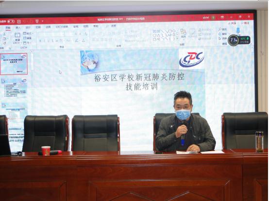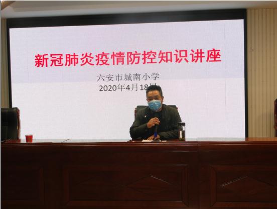 2020年4月18日下午2点30分在我校多功能教室召开了新冠疫情防控知识主题培训会。此次讲座由我校返校复学校园疫情防控指导员、西市街社区卫生服务中心杨军副主任主讲。我校全体教职工参与此次学习活动。