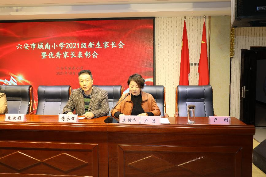 会上还举行了六安市城南小学2021年度家长学校开班典礼,表彰了家校工作成绩显著而被评为“六安市城南小学2020-2021学年度优秀学生家长”的家长同志,并邀请部分家长作了家教经验交流。
