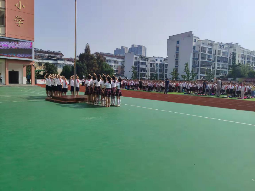 最后,大队长带领全体少先队员宣誓:“不忘国耻,不辱使命;努力拼搏,奋发图强;学好本领,报效国家!”