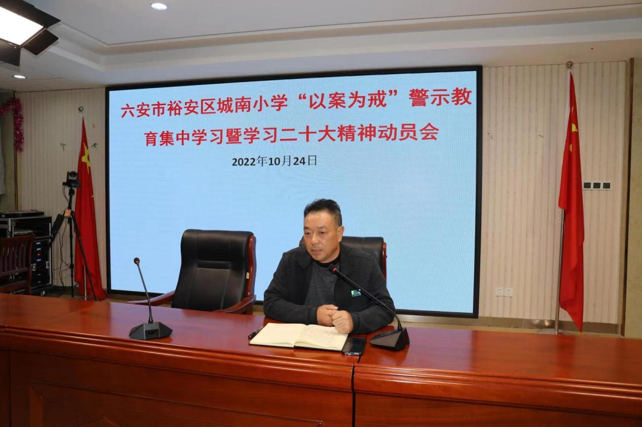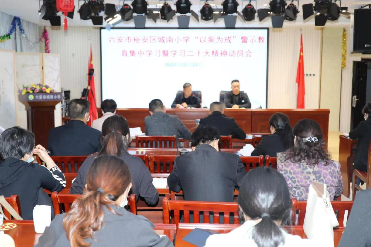2022年10月24日星期一,六安市裕安区城南小学全体教职工多媒体教室召开全体教职工会议。