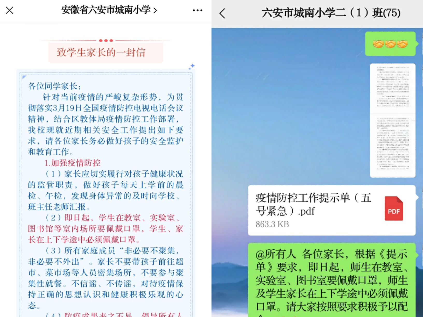 学校及时通过校园网、微信公众号、班级微信(QQ)群、校园LED、校园广播、展板等宣传途径,向全体师生和家长广泛告知校园疫情防控的相关要求;指引师生家长及时了解疫情动态,掌握正确疫情防控知识,以科学和理性的态度认识疫情,做到不信谣、不传谣、不懈怠、不恐慌。