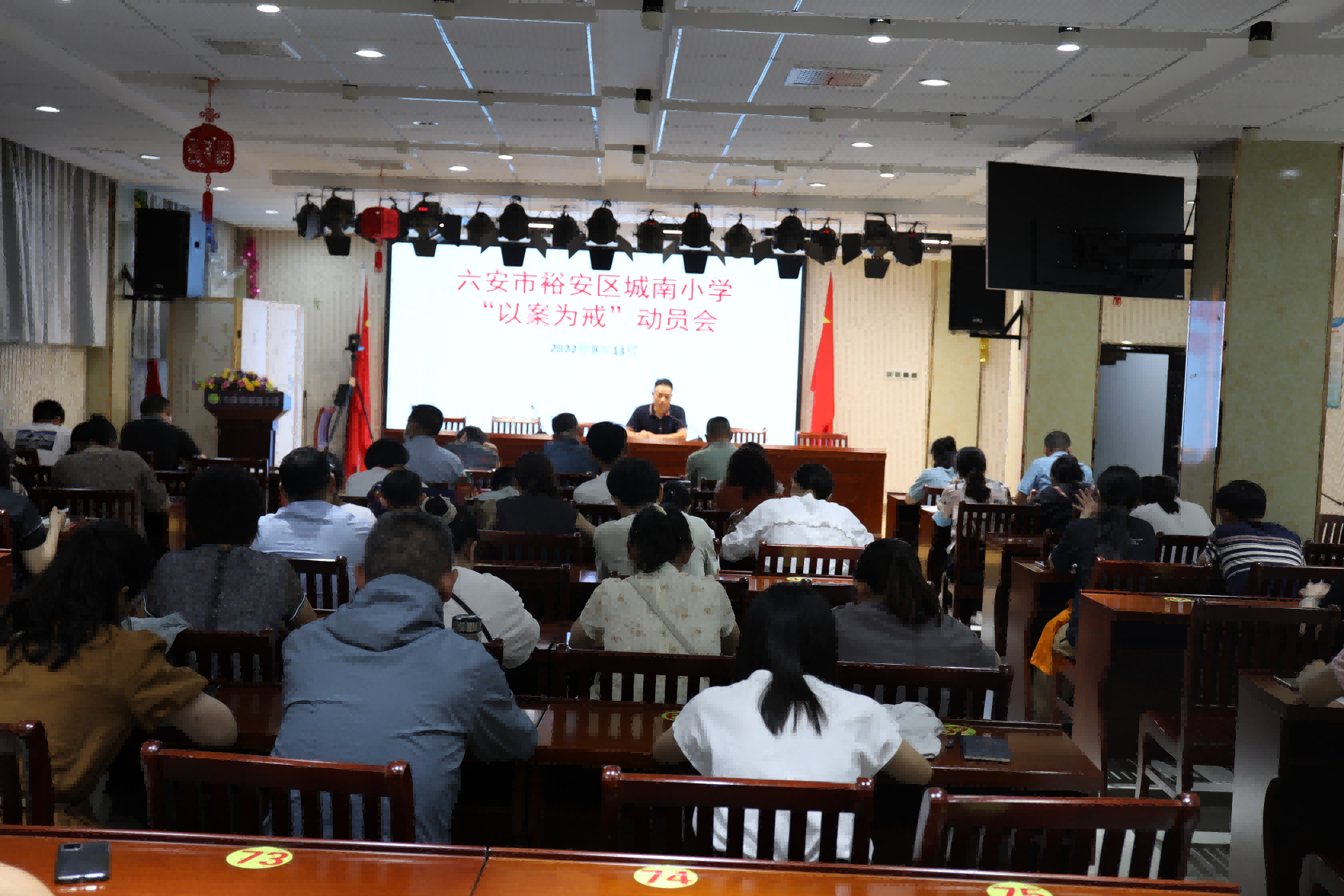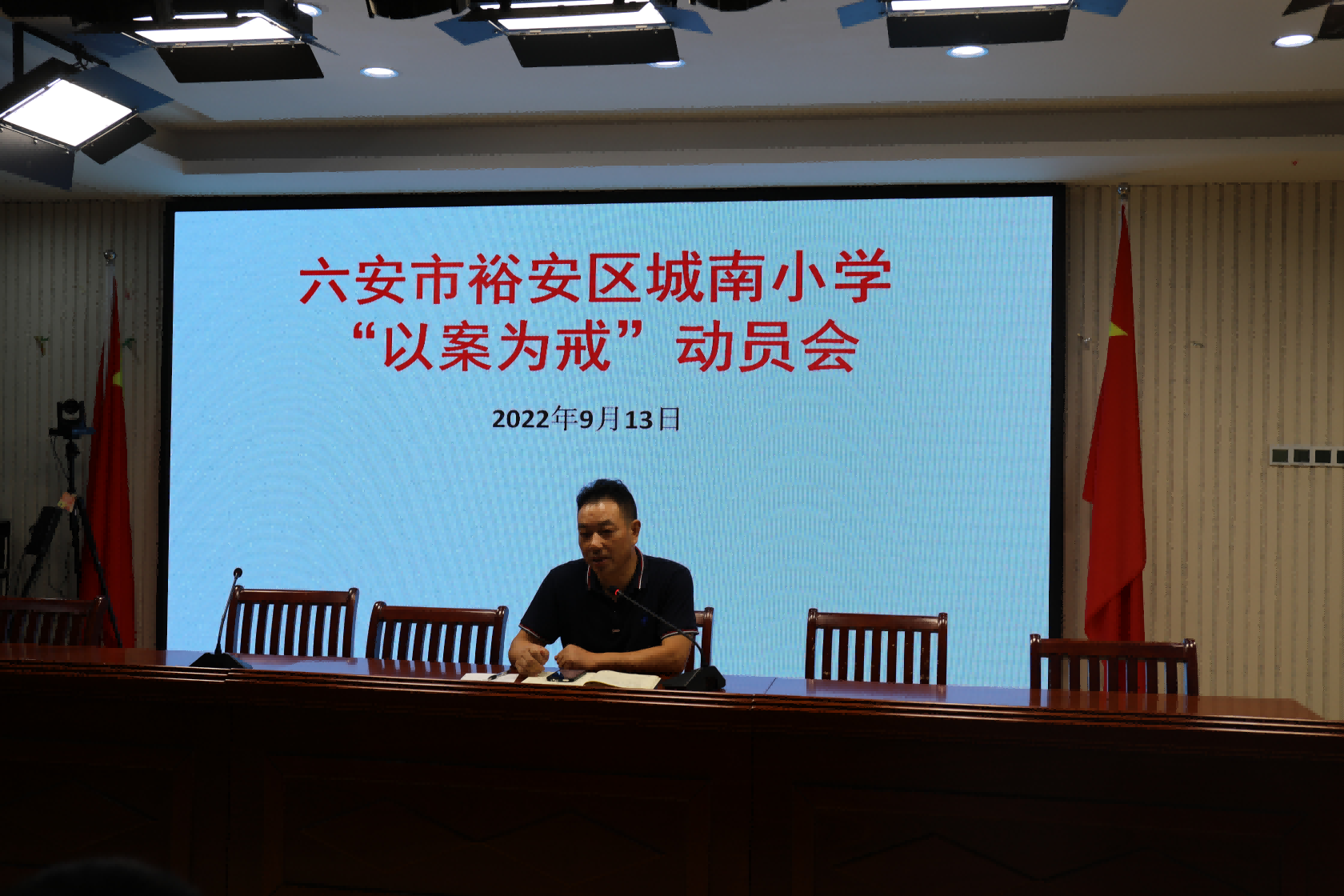 9月13日下午,六安市裕安区城南小学在校多媒体会议室深入开展“以案为戒”警示教育动员会。校领导及全体教师参加会议。城南小学党支部书记、“以案为戒”警示教育领导小组组长、校长傅永章主持会议并讲话。