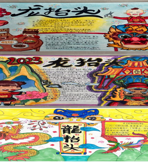 队员们还以“二月二 龙抬头”作为主题进行考察探究,通过搜集资料、家长访谈等方式探究龙抬头的由来、习俗、寓意等知识,并将成果用手抄报的形式呈现。