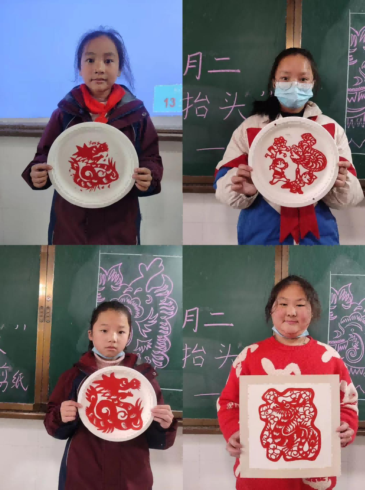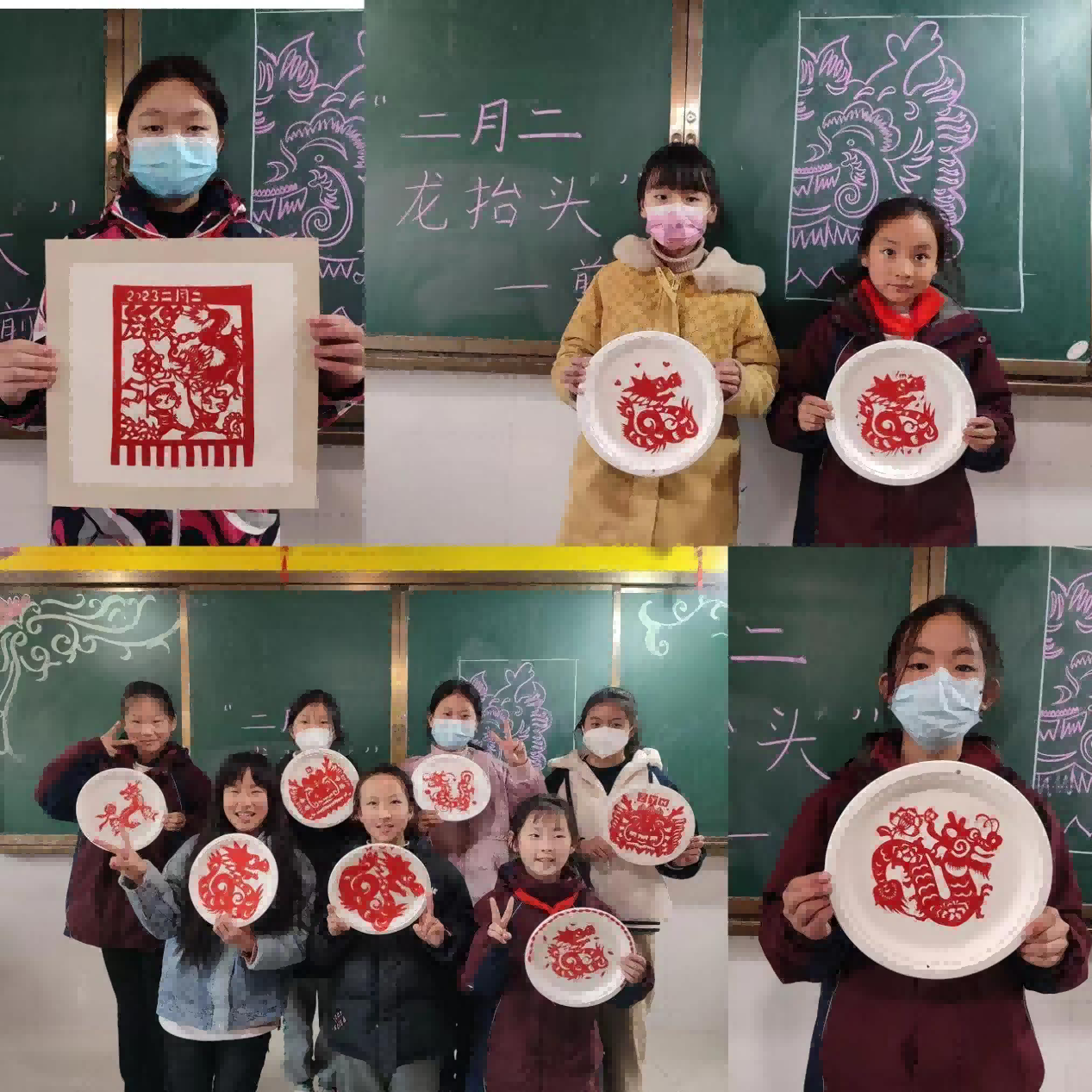 瞧,剪纸社团的老师带领学生们利用剪刀剪出“二月二 龙抬头”别样风采。