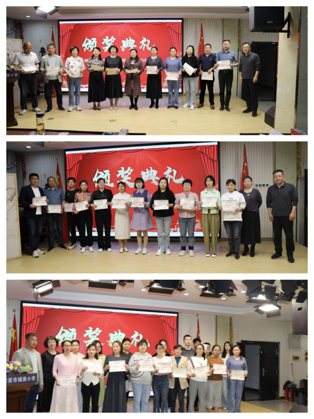 4月17日下午,在多媒体教室,举行了简朴而隆重的颁奖典礼。学校领导班子成员、全体教职工共同参加典礼,见证了参赛教师收获成功的重要时刻。在全体教职工的瞩目下,校长傅永章带领学校领导班子为获奖老师和评委老师们颁发证书并合影留念。