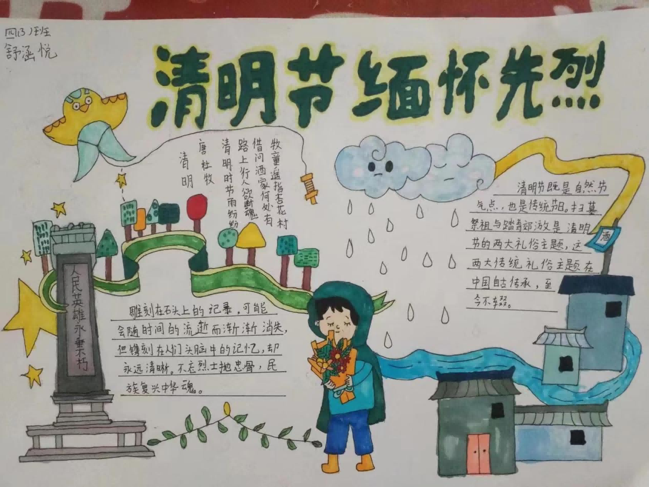本次清明节主题活动不仅让孩子们进一步了解了清明传统节日的丰富内涵,使学生真正明白没有无数革命先辈的勇于献身,就没有今天的幸福生活,同时也在学生幼小的心灵上播下了爱国爱家的种子,激发了孩子感恩生活、关爱他人的美好品德。