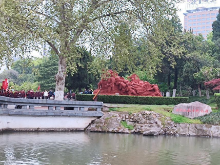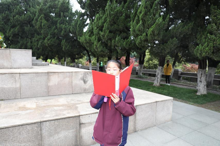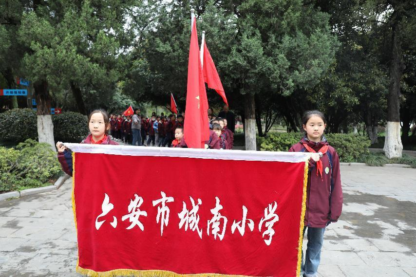 下午3:30,在校旗、班旗的指引下,同学们列队有序出发,老师们在路口指挥护送,朝气蓬勃的“长龙”,时时引路人侧目。约下午4:00,师生们安全抵达皖西烈士陵园。