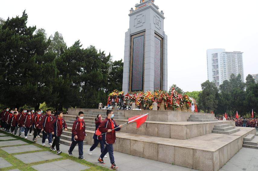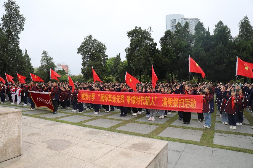 风起清明,春意盎然。为缅怀革命先烈,弘扬革命传统,赓续红色血脉,传承红色精神,进一步坚定广大师生的理想信念,增强广大师生爱党爱国的朴素情感。4月4日下午,城南小学三、四、五、六年级全体师生徒步至皖西烈士陵园开展清明祭扫活动。