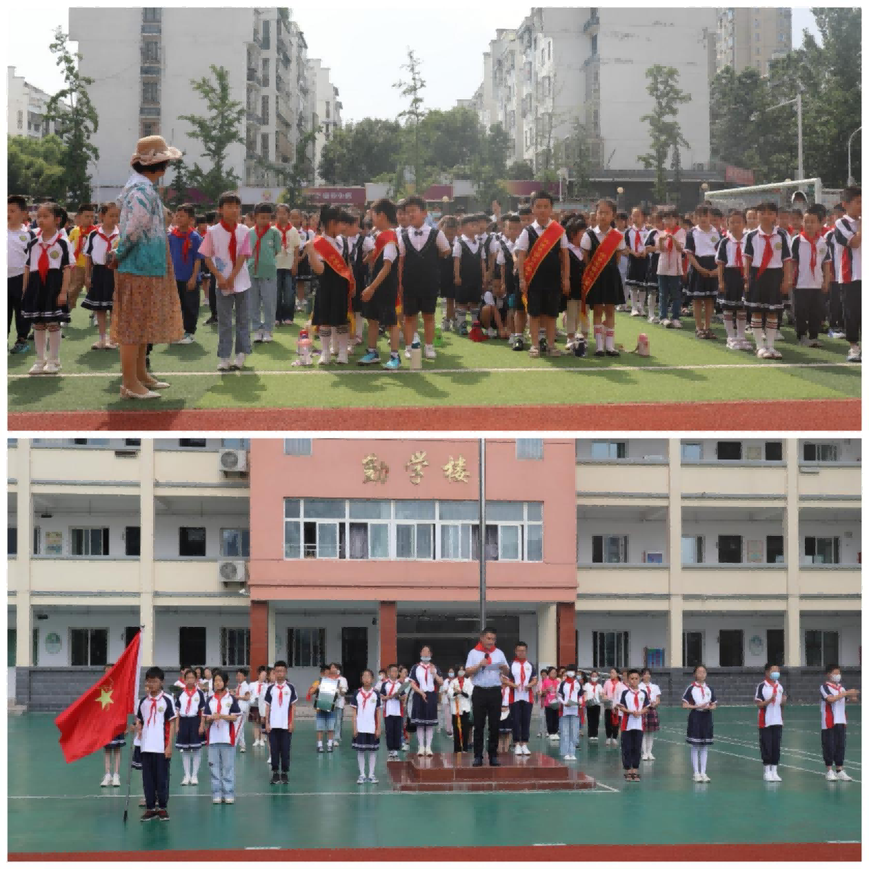 小禾青青,夏日如歌。美好的时光总是很短暂,今日份小学探索之旅即将画上句号,在这里,孩子们留下“我与小学的第一张合影”,将美好的记忆定格!
