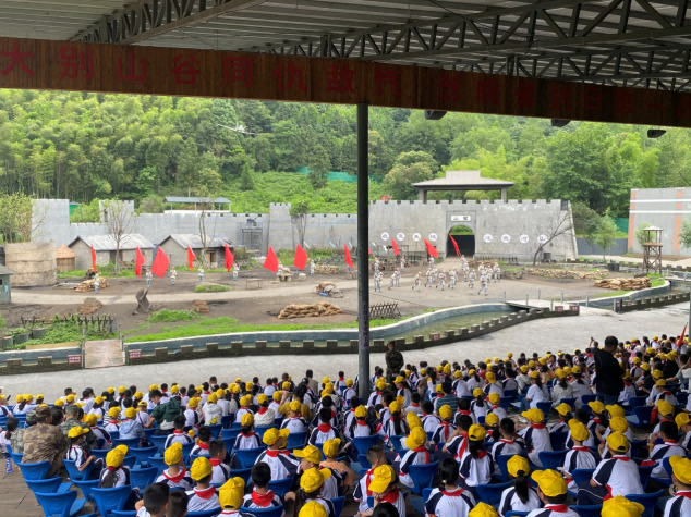 “八月桂花遍地开,鲜红的旗帜竖呀竖起来……”在六万情峡景区演出馆内,一部真实感人的实景剧《大别山传奇》以跌宕起伏的情节和扣人心弦的歌舞艺术,再现了当年皖西人民不怕牺牲、艰苦抗战的光辉岁月,让红色基因深深厚植于孩子们的身体里,使同学们融入其中,引领他们铭记历史、感恩当下。