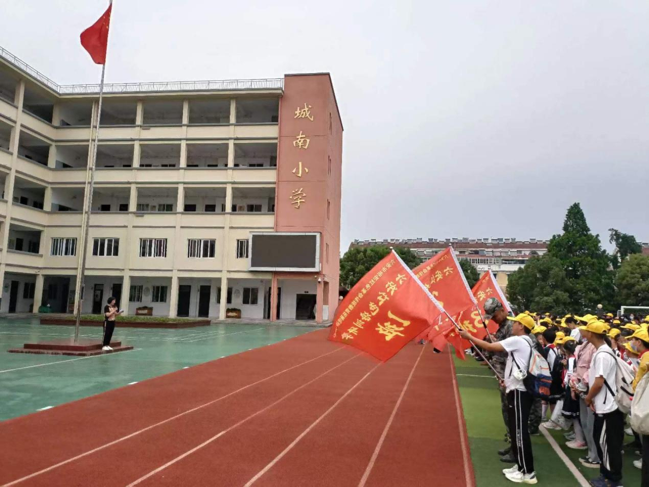 6月3日清晨,城南小学党支部书记、校长傅永章在研学开营仪式上对参与同学作动员讲话。他希望同学们能通过此次红色研学活动,在与历史的近距离接触中了解历史、感知历史,以史为镜,让英雄先烈的优秀品质在新时代焕发出新的生命力。他指出,这也是一次对心灵的洗礼,是感受红色文化魅力、体验时代变迁的一次活动,希望所有同学都能切实做到“传红色基因,筑强国之梦”!