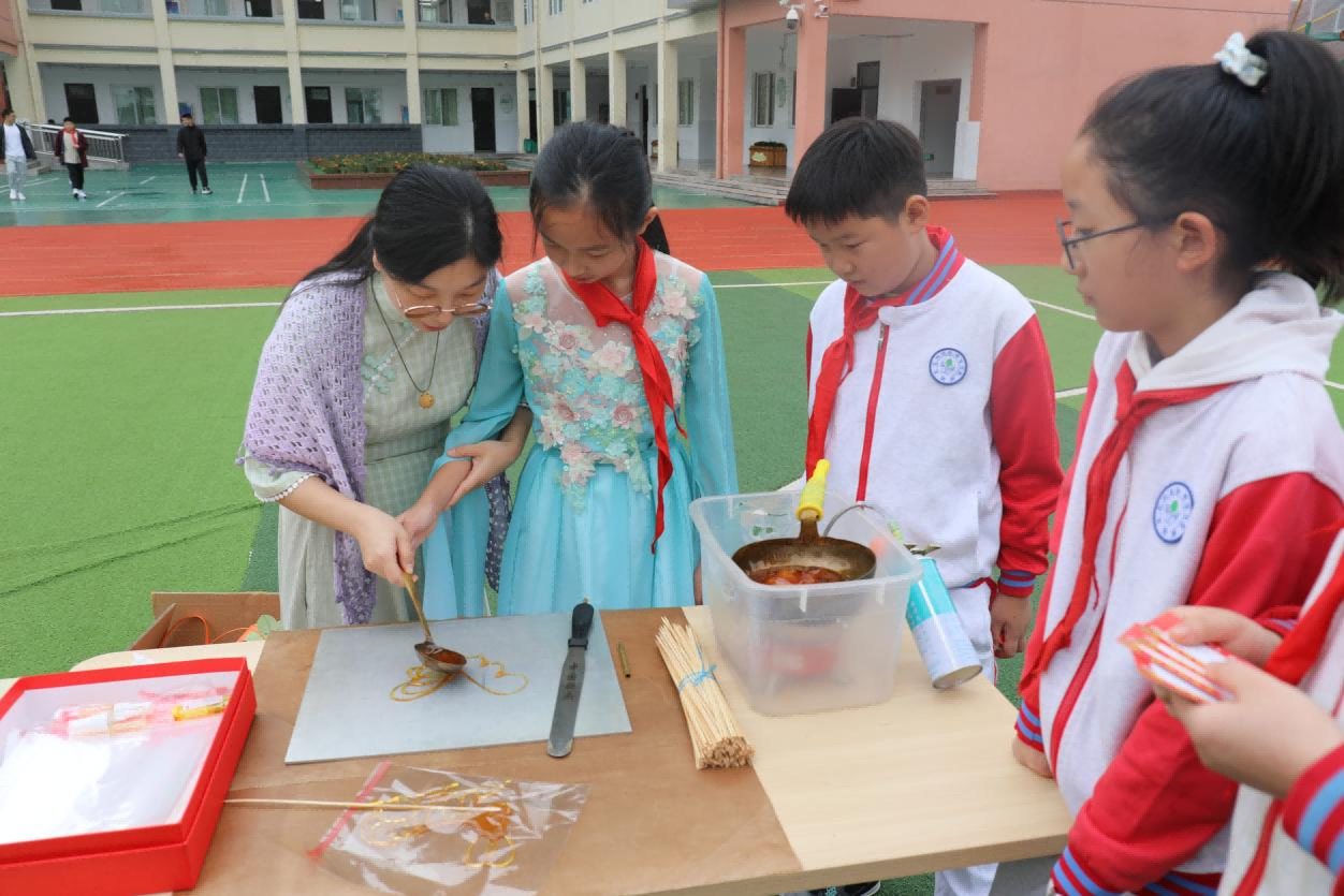 接着就是糖画了,这可是个技术活,不但要会画画,手还要熟练。在糖画师傅手里就非常轻松了,只见糖画师傅手把手的教学生,不一会一个小小的糖人就跃然纸上,惟妙惟肖。