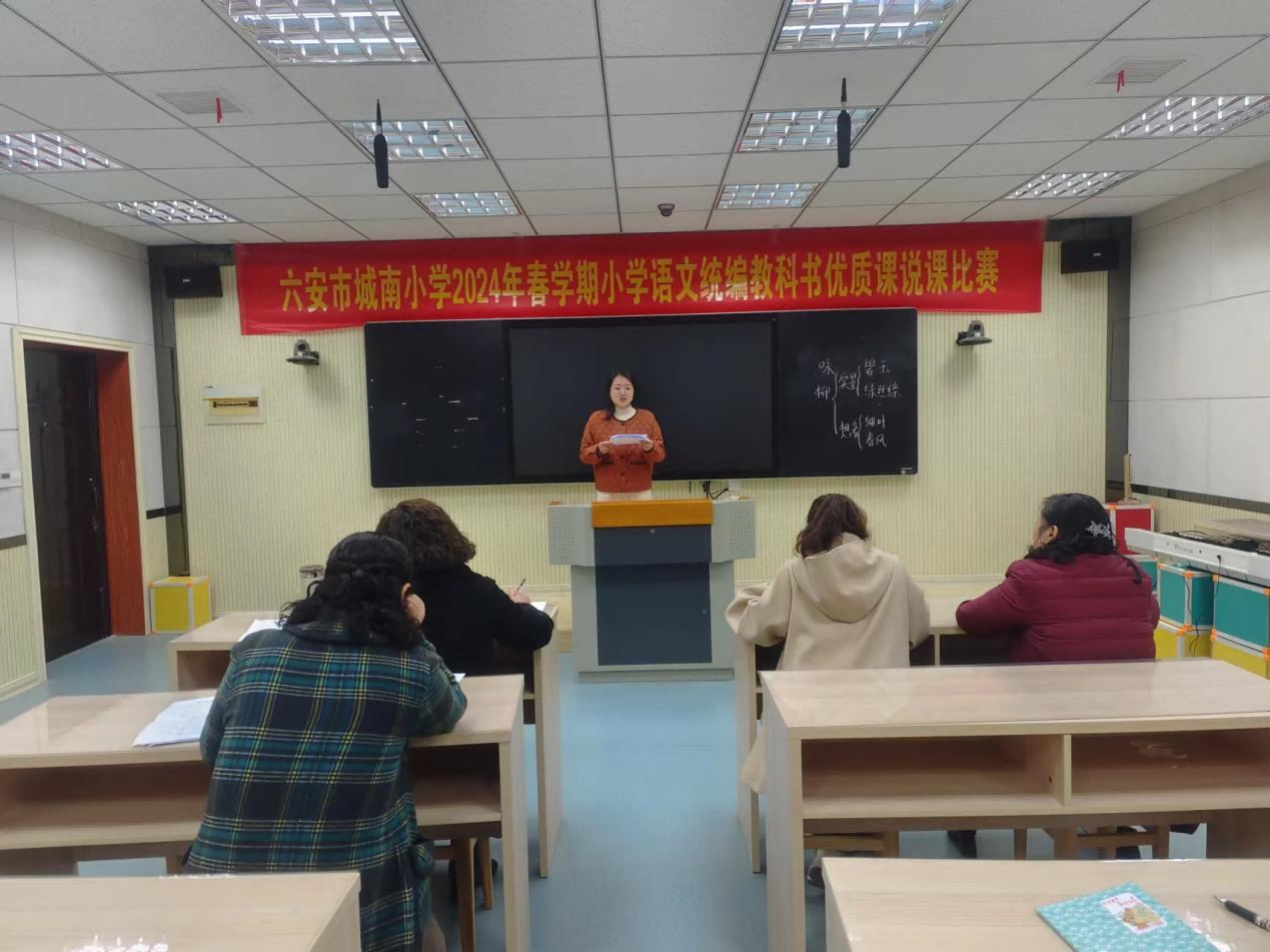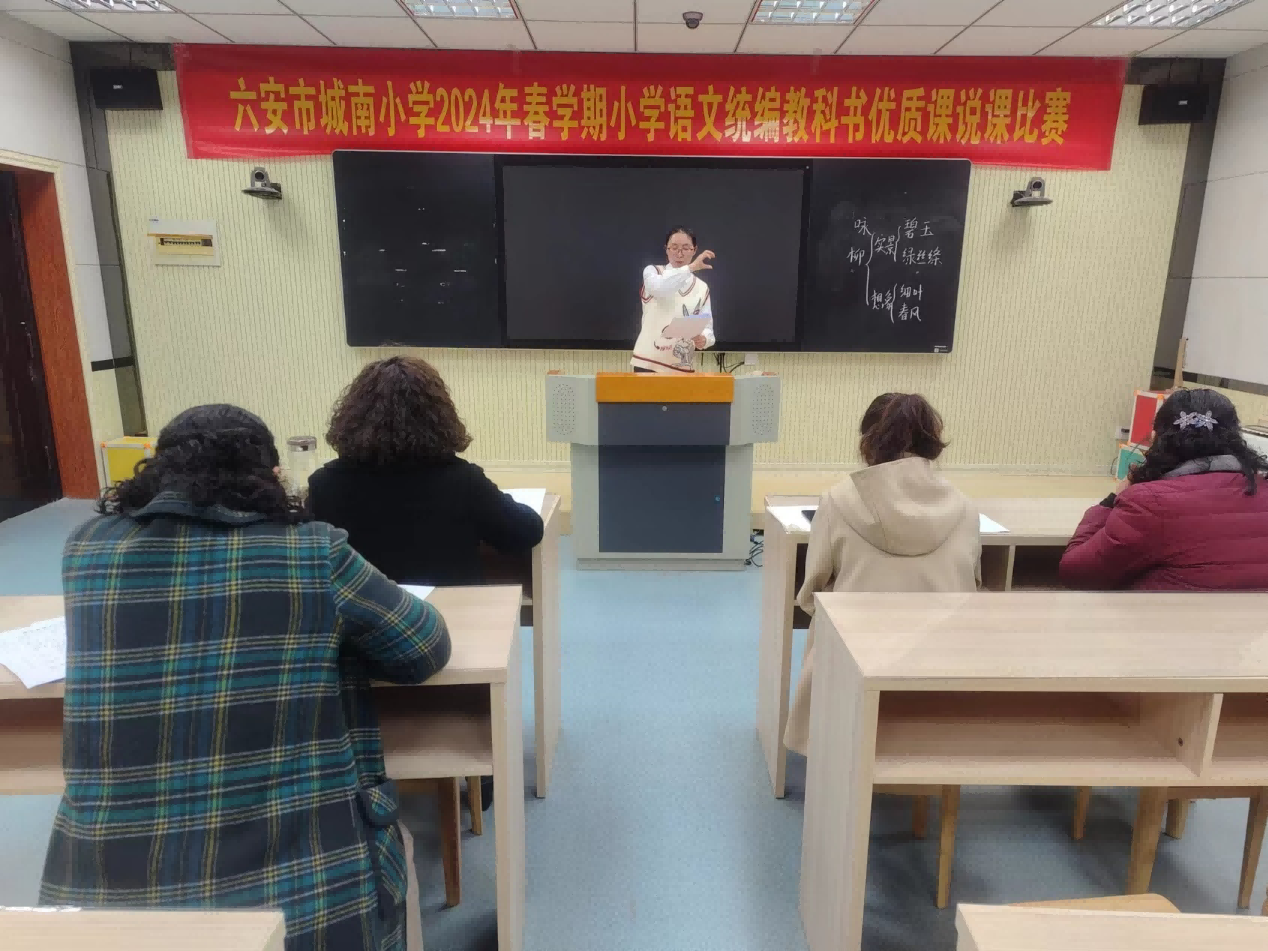 为深入开展《义务教育语文课程标准(2022年版)》、统编小学语文教科书研讨,落实立德树人要求,促进学生语文学科核心素养培养,适应“双减”需要,推进学科精品课程和教育信息化建设,结合省市区文件要求,我校小学语文优质课说课比赛于2024年3月12日下午在五楼录播教室进行。各位参赛教师认真准备、踊跃参与,展现出我校教师良好的精神风貌和扎实的基本功。