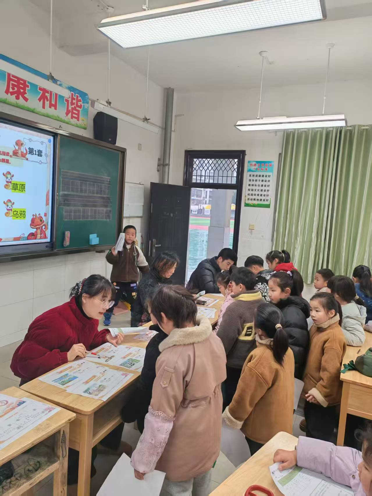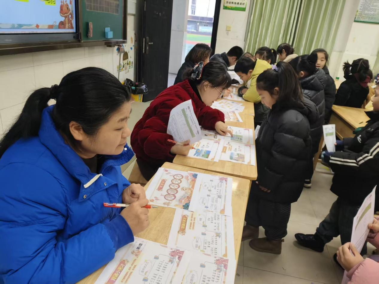 活动现场,每个班级都布置成了充满童趣的“闯关乐园”。级数学设置了“口算小达人”“图形小达人”等关卡,语文则以“识字小达人”“朗朗上口我来背”等形式展开。孩子们手持“闯关卡”,带着满满的兴奋与期待穿梭于各个考点。面对老师的提问,他们或自信作答,或放声诵读,清脆的童声与欢笑声交织在一起,让整个校园都洋溢着活泼的气息。